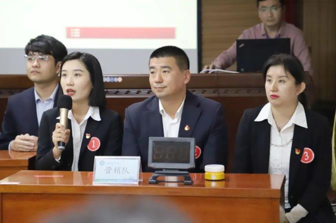 “蓬勃飛躍,勇?tīng)?zhēng)第一!”“紅色物業(yè),為民服務(wù)!”“不忘初心,砥礪前行!”“開(kāi)拓市場(chǎng),有我最強(qiáng)!”在一聲聲洪亮的口號(hào)聲中,比賽拉開(kāi)了序幕。此次黨史知識(shí)競(jìng)賽內(nèi)容新穎、形式創(chuàng)新,競(jìng)賽全程采取隨機(jī)抽題的方式,分別設(shè)置了必答題、搶答題、風(fēng)險(xiǎn)題三個(gè)競(jìng)賽環(huán)節(jié)。在第一關(guān)的必答題環(huán)節(jié),每隊(duì)輪流派出三名選手作答,大家應(yīng)答如流、自信滿滿,黨史知識(shí)儲(chǔ)備可見(jiàn)一斑,比賽氛圍熱烈。